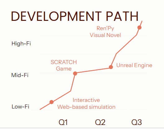 After discussing during our class session, I had to change directions. With the limited amount of time left, I decided to create a Visual Novel. While unfortunately straying away from a VR-based simulation, it was still in the "Game" category.